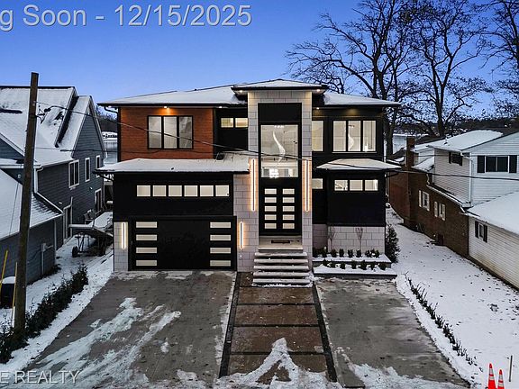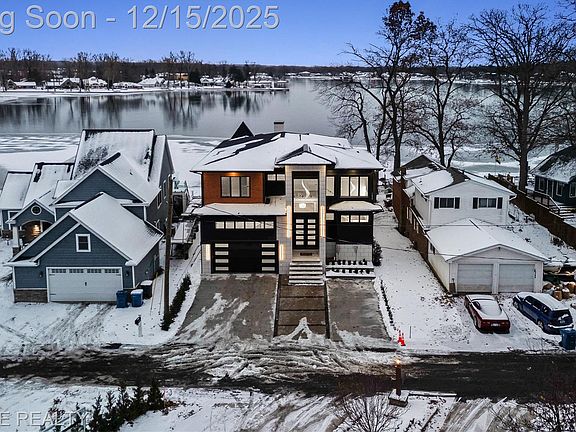 Experience a rare chance to own a brand-new luxury build on all-sports Lake Fenton — Sodded with a sprinkler system and a 5' Crawl space, crafted from the ground up with top-tier finishes. This isn’t your typical new construction; every detail was designed to stand out. As the tallest home on the street, it makes an immediate impression with a custom driveway and limestone entry steps. Inside, the foyer sets the tone with a soaring ceiling and double chandeliers. A custom wine display greets you before the office, and as we enter the living room, a massive Montego porcelain-slab fireplace centers the space while pulling you toward the covered lakeside patio. The kitchen offers a coffee bar, wine bar, Cristallo countertops, and a full Lighted Cristallo island paired with top-tier appliances. A second kitchen with a double convection oven keeps daily cooking simple. The garage was built for car lovers — designed to support a lift holding two additional cars for up to four total, and finished with fresh epoxy and added traction flakes.