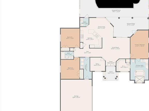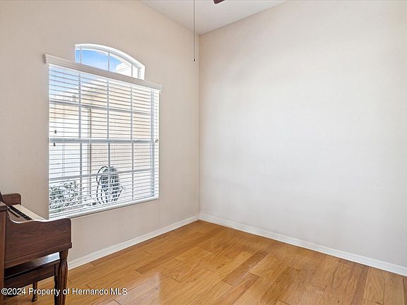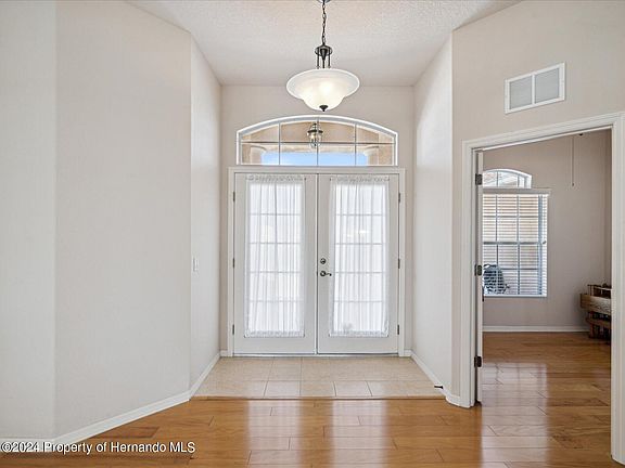 Welcome to your dream home at 13282 Linzia Lane, nestled within the prestigious gated community of Pristine Place. This exquisite single-family residence offers the epitome of luxury living, boasting 3 bedrooms plus an office, 2.5 baths, and a 2-car side load garage, all spread across 1,938 square feet of impeccably designed space. As you enter through the double doors, you're greeted by the light and bright foyer. The interior features high ceilings, a split bedroom plan for added privacy, and a thoughtful layout that maximizes both comfort and functionality. Enjoy your laundry duty with this sizable laundry room and front-load washer and front-load gas dryer. The heart of the home lies in the stunning kitchen, outfitted with stainless steel appliances, including a gas range oven, and abundant cabinet space for all your culinary needs. The adjacent dining room offers breathtaking views of the pool and spa through large butt-joint windows, creating a serene ambiance for every meal. Retreat to the luxurious primary suite, complete with a tray ceiling, private entry/exit to the lanai, and an en-suite bath that rivals a spa retreat, featuring ample counter and storage area as well as dual sinks. Indulge in the oversized jacuzzi-style garden tub, walk-in shower with dual heads and rainfall extension, providing the ultimate in relaxation and convenience. Step outside to your own private oasis, where a covered brick-paver lanai awaits, housing a screened-in, heated pool/spa combo and propane gas hookup for your grill. Entertain guests or simply unwind in style while enjoying the tranquil surroundings. The pool features programmable multi-color lights, a 3-year new salt system, a brand-new pump and a 2-year new propane heater ensuring your enjoyment year-round. Beyond the confines of your home, the community offers an array of amenities, including a large pool, playground, gym, tennis/ pickleball courts, and reception hall, providing endless opportunities for recreation and socializing.