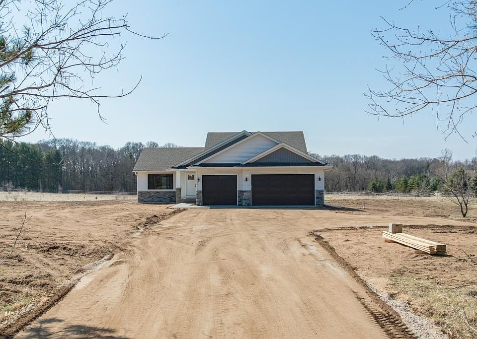 This beautiful 3BR/3BA home features a large open floor plan with 1/2 bath mudroom on the main level. Great open kitchen area with a large pantry, SS appliances, custom cabinets with pull out trash, large center island & vaulted ceilings. The upper level has 3 bedrooms, 2 bathrooms. 3rd and 4th level ready for your finishing touches. The possibilities are endless on this 4.78 acre. Mature trees are around the lot line. Easy access to 169.