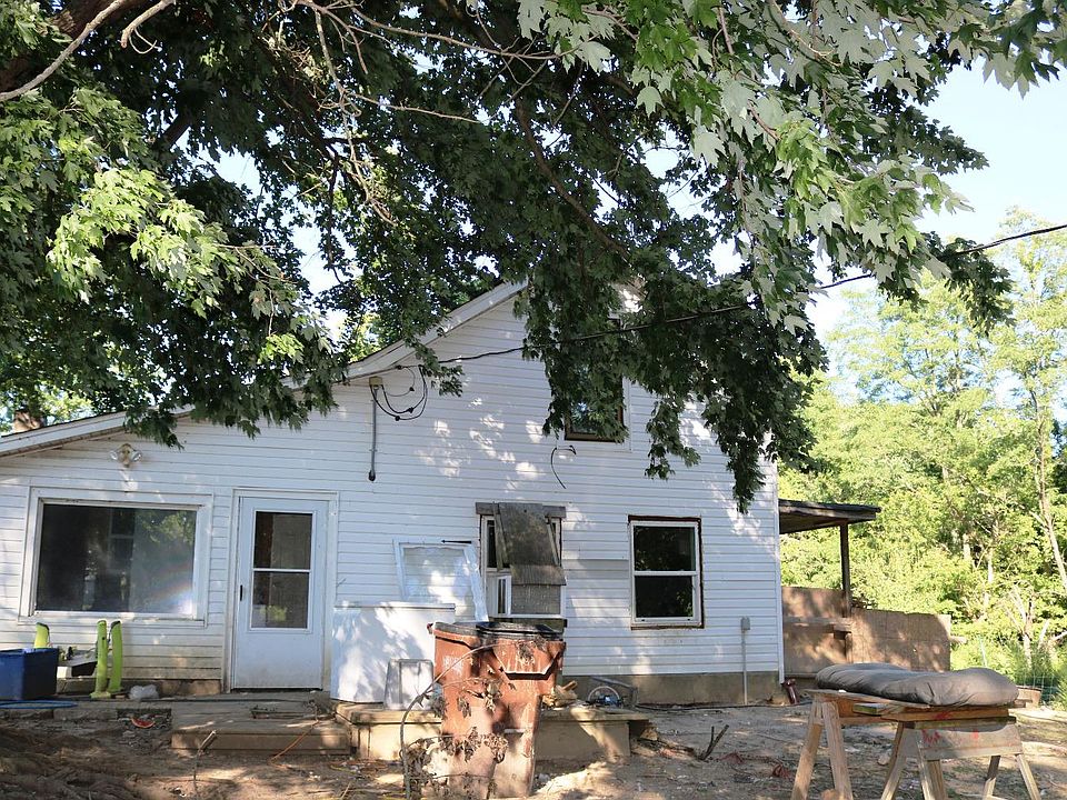 Oh the privacy this farmhouse has to offer! Nestled in the trees on almost 4 acres is a great opportunity to so some work & end up w/ a dream home! Home features 3 bdrm, 1.5 bth; outbuildings, gated property; barn. The upstairs has been updated w/ plank walls. Property sold 'as-is'.