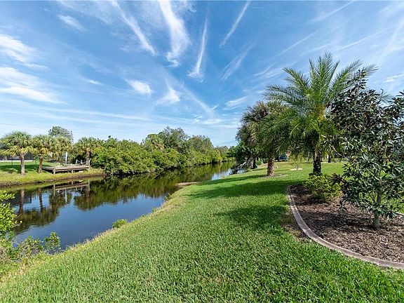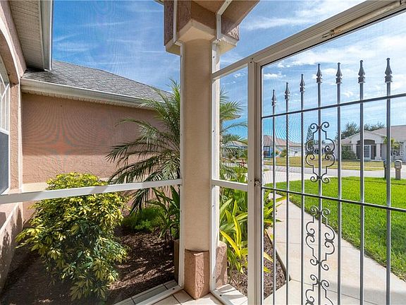 Rarely available canal home in the much sought-after Gardens of Gulf Cove in Port Charlotte, FL close to the Englewood boarder and only 15 minutes away from the gulf beaches on Manasota key or Boca Grande. The semi-open split floor plan offers 3 sets of pocket sliders to the Florida Room and French doors from the dinette/nook area. The living room sliders are topped with a large transom window providing extra light. The home features carpeting and tile throughout. The kitchen features a granite counter with bar top, recessed lighting, pantry, and pocket door to the separate bedrooms and bath area. Great to close off guests when you are up early in the kitchen. The nook area has a large window to enjoy the view of the freshwater canal in the rear yard. The master bedroom offers sliders to the Florida room, tray ceiling, two 5x6 walk in closets, double sink vanity, linen closet, garden tub, walk in shower and water closet. The Florida room is 29x10 and has acrylic windows with screens, a door to the rear yard, ceiling fans, a high ceiling and a vinyl type wainscotting along the bottom to offer privacy. Home even has a irrigation well and sprinkler system. In the Gardens there are 4 lakes, underground utilities, sidewalks, streetlights, county water and sewer. The low yearly fee of $365 includes 2 community pools (1 heated), tennis courts, shuffleboard, bocce play, basketball court, rec center, exercise equipment, pool tables and a friendly atmosphere. Shopping and dining are all around.