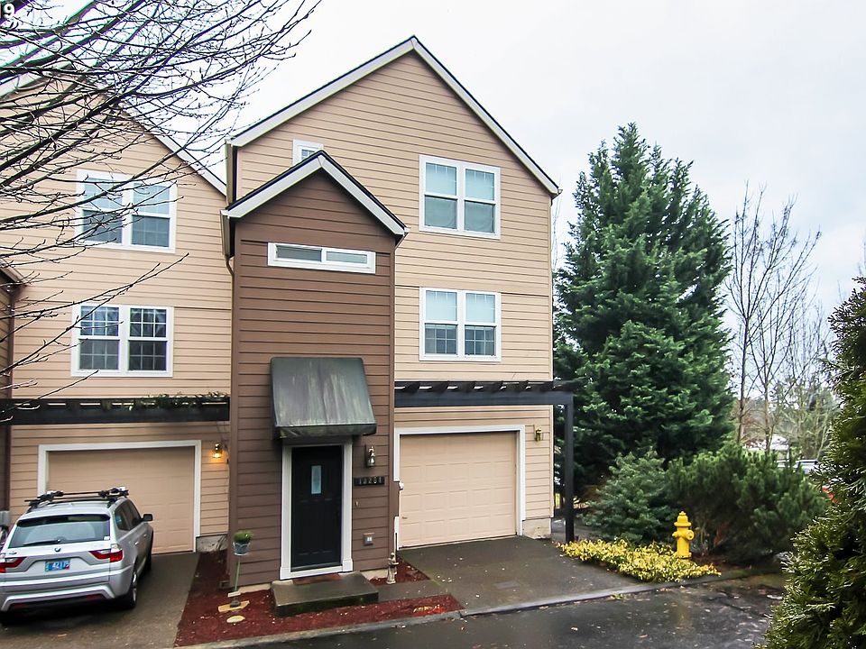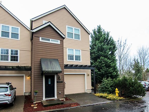 Beaverton's finest townhome w/incredible vaulted ceilings & natural light beaming from all angles! Bedrooms on all 3 floors w/private bath. Galley kitchen awaits you with stainless steel appliances and stackable W/D. Dining room overlooks vast greenspace that will never be built on! 2 balconies to enjoy the natural view, fenced backyard for small pets & community parking right next to the unit! Well managed HOA with low dues. New roof!