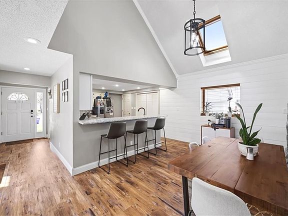 This beautifully updated 1.5 story/ranch home boasts an array of fantastic upgrades, making it a haven of modern comfort and style. The updated kitchen features a new backsplash, granite countertops, a quartz kitchen sink, and freshly painted cabinets with on-trend hardware. Throughout the home, you'll find newer LVP flooring and carpet, along with fresh interior paint, new light fixtures, shiplap accent walls, and updated toilets. The main level offers three bedrooms, including the primary bedroom which conveniently walks out to the pool area, perfect for a refreshing dip on sunny days. Upstairs, a second-level living space awaits, complete with new bar countertops and sink, plus skylights that provide abundant natural light and are equipped with energy-efficient solar-powered blinds. You'll also find a fourth bedroom on this level. Outside, the entertainment and privacy are unmatched. The backyard, backing to greenspace that is owned and maintained by JCCC, is a tranquil retreat featuring a pool. The newly added turf for mini-golf provides endless opportunities for leisure and recreation. Don't miss out on the opportunity to make this stunning property your own. Welcome home to comfort, style, and luxury in Overland Park!
