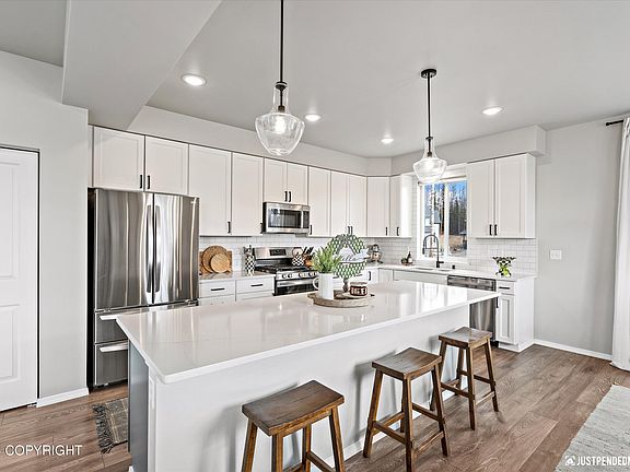 Come see this bright and open concept one-owner Powder Ridge home on a cul-de-sac! Step into the inviting kitchen and expansive great room that's ideal for hosting, with mountain views and a cozy fireplace. Generous layout features a second living space and all 4 bedrooms on the upper level, with a modern and luxurious primary suite. Fenced yard and oversized 3 car garage. Easy commute to JBER.