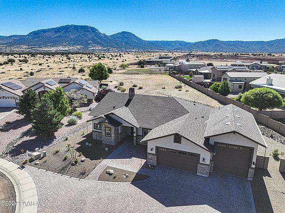 VIEWS,VIEWS, VIEWS as you enter this one year old home. Extra large lot at .68 acre includes a15x 40 foot RV garage!(14'6x39 inside) 2x10 pop out work bench with windows. Gorgeous kitchen with beautiful granite countertops, stainless steel gourmet kitchen with wall oven and microwave with 36 inch cooktop. Stone fireplace tops of the 12 foot sliders as you view the Mingus Mountains and national forest. Priced to sell. Room to build a second out building on this amazing lot.Full house filtration water system. Large master suite with slider to outside and spa like bath with stand alone tub! Wonderful neighborhood 5 miles to town.Propane to be prorated at closing and paid by buyer. National forest nearby to ride your side by sides. Come Quick!