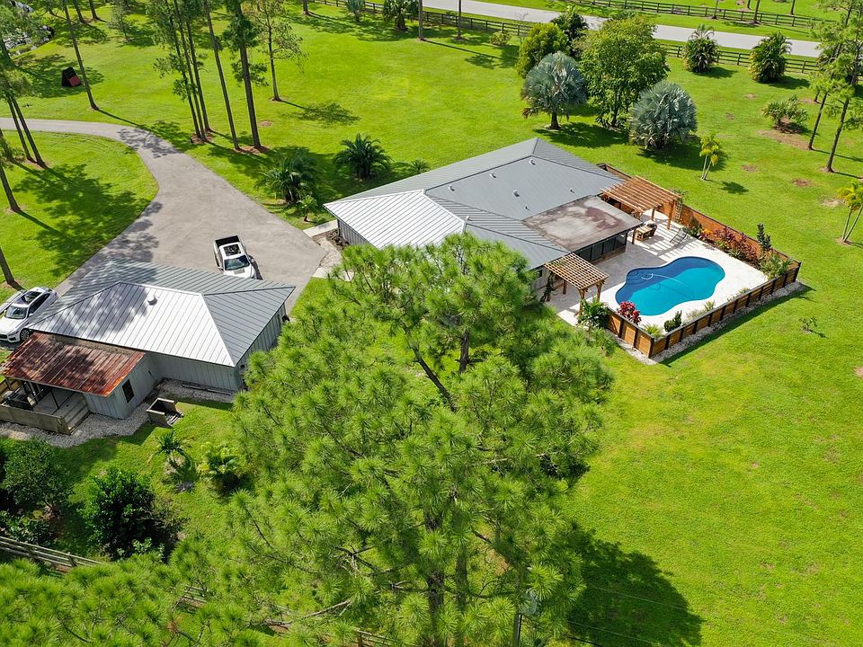 Get Ready For Your Equestrian Dream Property! This Piece Of Paradise Offers A Little Bit Of Everything. Private and serene community of Caloosa. This well-maintained 5+ acre of property has been completely updated inside and out.Single family home on corner lot. Fully Renovated 3 bed / 2 bath /an office / and den . 2 separate car garages for two cars each, 4 car garage total. Impact windows. Screened patio, over looking swimming pool. New fence surrounding entire property. New driveway wood gate . New A/C, new roof. Beautiful home with ideal layout for entertaining. Salt water swimming pool has been newly finished. The kitchen has been updated with beautiful cabinetry, countertops and stainless steel appliances.