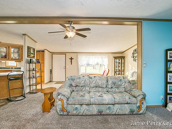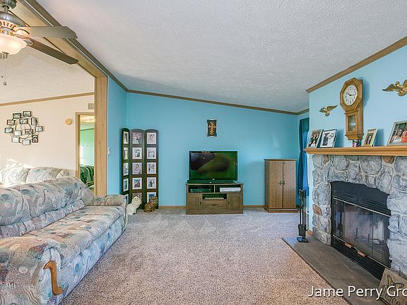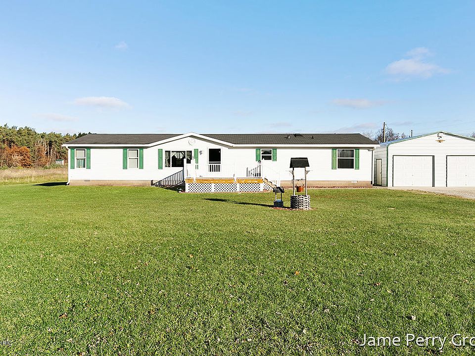 Large ranch home that is immaculately maintained is waiting for you on over 2 acres. Walk inside to open concept seating area living room with log fireplace that is opened to the built in bar and pass through to the huge kitchen. Dining area opens to patio door and 12x24 covered porch that overlooks the back of the property. Large master suite with walk in closet and both tub and shower. This home also features 2 more large bedrooms on other end of home adding privacy to master. Another full bath compliments the 2 bedrooms both with large closets. Out back is a storage shed with power and an additional 25x16 Pole building. Detached garage shows new and has 220A electric if you wanted a shop. Home shows impeccable call today for your private showing.