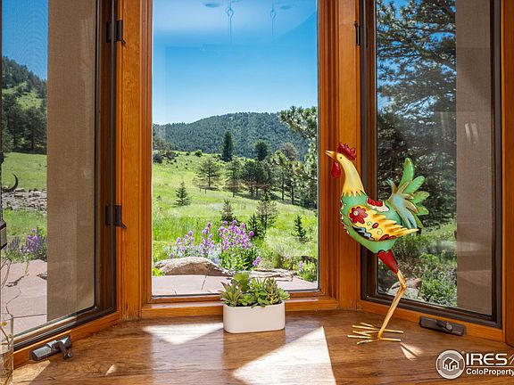 Beautiful land for this beautiful home. This modern southwest style home is perfectly situated on a south facing mountain knoll with 57 very private acres, providing sweeping views of the foothills and continental divide. Walk out your door and hike for miles. Many large windows capture the views and bring in great natural light. Open floor plan! The focal point of the main floor is a stunning two-story stone fireplace. Spacious primary bedroom with private bath, and an adjacent alcove offering fantastic views. Main level reading area, and beautiful full bath made of stone and glass. Lower lever accessed from two story glass atrium to fa family room, photographic dark room, second bedroom and full bath. Upper lever of this wonderful home opens on to a balcony overlooking the living room and fireplace, and a study area, large third bedroom with a grand view of the continental divide and a full bath. The home is fully "off grid" capable with a complete active solar system, passive solar features and propane generator back up. In addition to the attached 2 car garage, there is a large detached 2 car garage/work shop. Looking for style, beauty and privacy? Here it is.