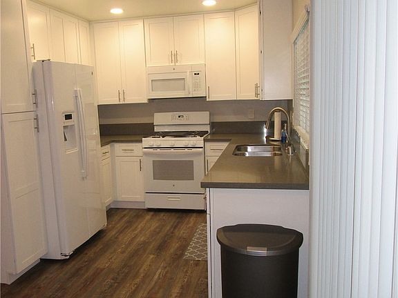 Townhouse was remodeled in 2021 and the following items were updated at that time. Air Conditioning, Force Air Heating, Water Heater, Double Pane Windows, all the Cabinets, all the Counter tops, all the Appliances, all the plumbing fixtures, all the lighting fixtures, flooring, ceiling fans, & recessed lighting. 3rd bedroom has built in desk & cabinets, but they can be removed. It has a closet in the same room also. The complex is scheduled to be repainted in approximately 4 months. The home is ready for you to move in like no other Townhouse in Garden Grove.