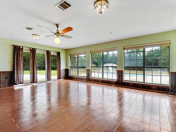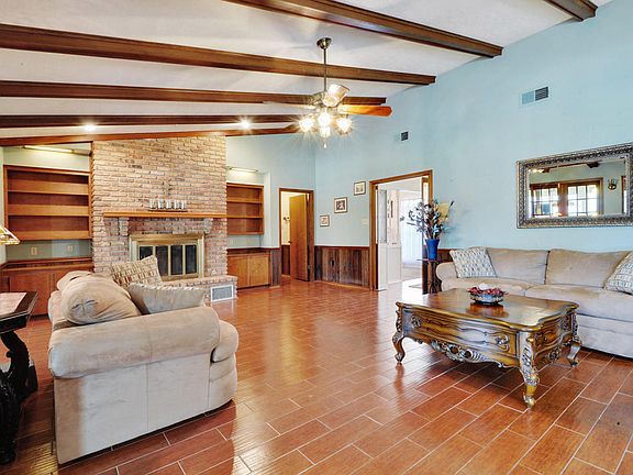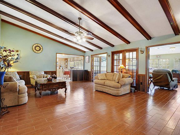 Sprawling family home on 4 acres in the city! So close to everything, this gem has much to offer. Two masters, one is perfect for a mother in law suite with its own entrance. Vaulted ceilings, formal dining and living rooms, large den with a fireplace AND a large family room overlooking the pool! Enjoy the view from the patio and swim in your gunite pool. Plenty of room for a family!