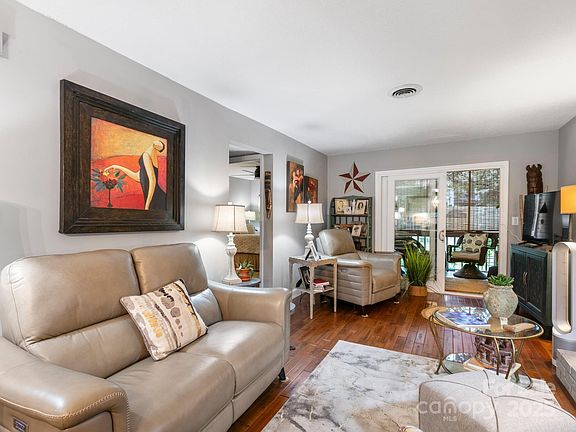 Searching for the perfect place to walk to downtown Hendersonville and walk a few steps to the Ecusta Trail? This end unit condo is perfect. Unit features: ground level, updated kitchen with stainless appliances, natural gas range, quartz counters, flooring throughout the home (wood and tile), lighting, gorgeous ensuite master bath with new walk in shower, decorator wallpaper, natural gas fireplace, great screened porch accessed by new sliding doors, beautiful wood entry door. This community is walkable to Laurel Park, has a community garden space, 2 dedicated parking spaces, new roofs 2025, and is in a very private location. There is an attached storage room. Seller has created an inviting outdoor seating area and has landscaped beautifully along a backyard privacy fence. This condo is one of a kind and is a must see. You will love this one!