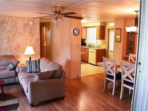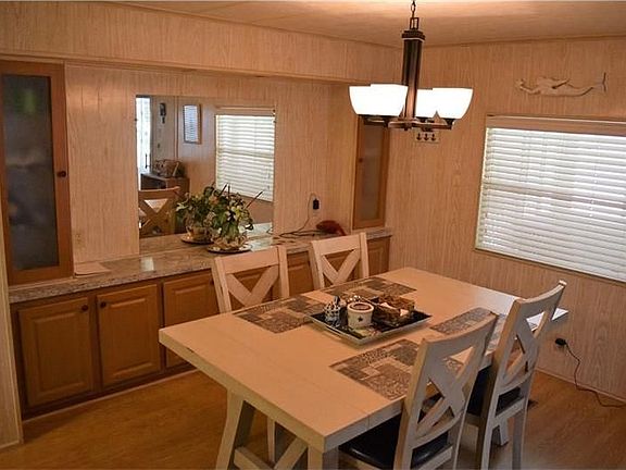 Don't miss this 2 bedroom/2 bath 1981 Palm Harbor mobile located in desirable Lake Frances Estates. Updated with laminate and porcelain tile flooring. Spacious open floor plan featuring kitchen, dining room, living room, 2 bedrooms, and 2 baths. Approximately 1,160 sq. ft. of comfortable living. Both bedrooms have walkin closets. Enjoy the large oversized tool shed with washer, dryer, ceiling fan, and air conditioner. Plenty of storage and nice work area. Unit has double carport and front glassed Florida Room. Built in sprinkler system and double roof. Clubhouse features an inside and outside pool. HOA only $35 per month. Golf cart and animal friendly park.