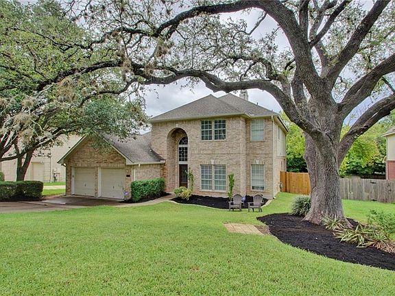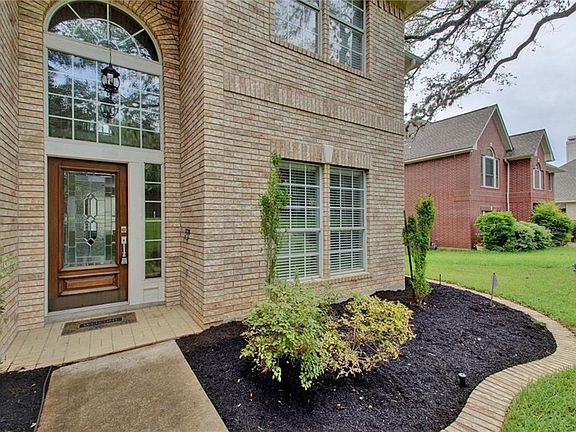 Beautifully remodeled in Scofield Farms. Wood floors and tile throughout, only carpet is in bedrooms. Kitchen remodeled with white cabinets, stainless steel appliances, vent hood, cooktop, modern wood pattern floor tile, canned lighting, drop lighting, cool-blue walls with accent backsplash; grand entry with wooden baluster stairway, crown molding; large upstairs game room; master bedroom has arched ceiling, master bath has double vanity, jetted tub, separate shower; large back patio. Formal dining room, large family room, master bedroom and kitchen down with 3 bedrooms and game room upstairs.