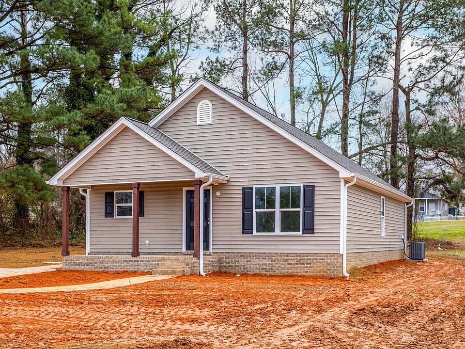 Welcome to this stunning new construction home, offering 1,283 square feet of thoughtfully designed living space. Featuring three bedrooms and two bathrooms, this home is perfect for those seeking comfort and style. The open living areas are complemented by 8-foot ceilings and spacious rooms, providing an airy and inviting atmosphere. The kitchen is a true highlight, boasting light wood-toned cabinets, sleek granite countertops, and ample space for meal preparation and gatherings. Step outside to enjoy over an acre of land, complete with a wrap-around porch ideal for relaxation or entertaining. With modern finishes, timeless charm, and durable construction, this home is ready to become your private retreat.