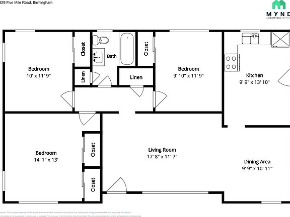 Discover a charming home at 1329 Five Mile Road. This 3-bedroom, 1-bathroom property offers 1,127 square feet of living space. The inviting living and dining room flows into a fully equipped kitchen. The primary bedroom features a spacious closet and shares a full bathroom with two additional bedrooms. Conveniently located just 20 minutes from downtown Birmingham, this home ensures an easy commute and quick access to a variety of amenities. Apply today!