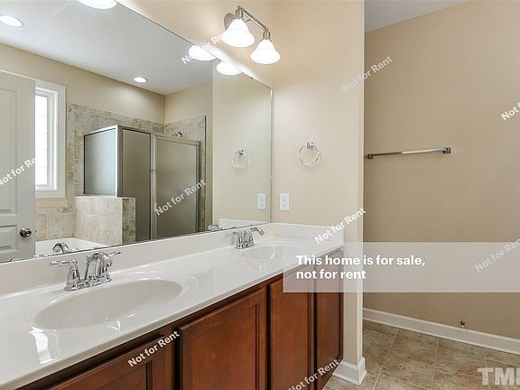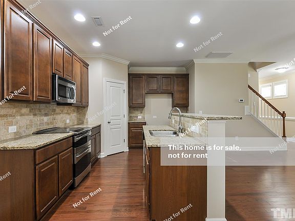 Built-in 2013, this Raleigh two-story offers a deck, a fireplace, a kitchen island, granite kitchen countertops, a double oven, a master bath separate tub and shower, a master bedroom walk-in closet, a mudroom, and a two-car garage.
