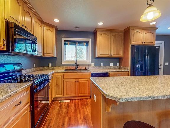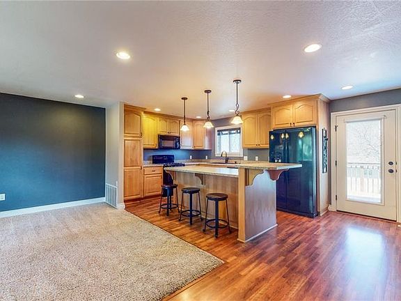 An excellent home with open living area. Gas fireplace in the living room open to the kitchen. Large island with seated eating area & patio door to a two tiered oversized deck. This is a multi level home with the upper most level boasting 3 large bedrooms, hall bath, & bath off the master bedroom. The lower bsmt or daylight level has a large family room with a wired sound system. Nice features with light switch dimmers, new microwave & washer & dryer stay. This home is move-in ready. Fenced in garden area in backyard, in addition to fenced yard and mature trees.