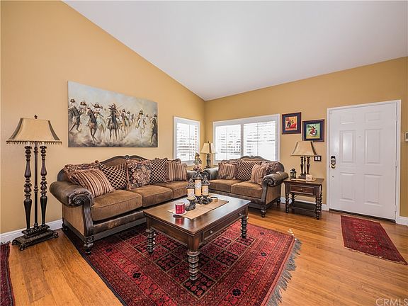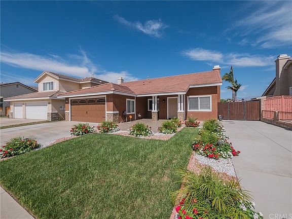 ATTENTION ALL BUYERS!!!THIS IS A MUST SEE HOME!!! This beautiful single story home offers 3 beds and 2 bath and is conveniently located in desirable neighborhood in the city of Corona with great curb appeal. As you walk in to this charming home you'll find the spacious living room that leads to the dinning area. The kitchen is beautifully upgraded with granite counter tops, stainless steel appliances, kitchen island and captures a lot of natural light. The family room is very open with cozy fireplace perfect to relax. Wood flooring throughout the home. Three good sized bedrooms and beautiful white blind shutters throughout the home. The master bedroom has a sliding door that gives you access to the gorgeous back yard and you also get a lot of natural light. The back yard of this home is just beautiful! offers a cute fire pit and cute patio perfect for relaxing and family gatherings. The laundry room is conveniently located inside the home. Direct access to a 2 car garage and much more!!!! Do not miss the opportunity to see this gorgeous home as it will not last!!