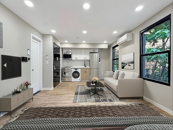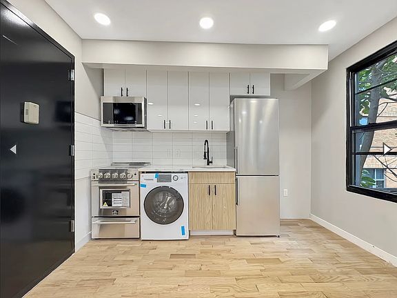 Stunning Luxury Residence in Highbridge This newly rebuilt apartment is a fresh standout in Highbridge! Thoughtfully designed from top to bottom, the space features three oversized windows that flood the home with natural light. Beautiful hardwood floors add warmth and contrast perfectly with the sleek white kitchen, complete with modern finishes and a new washer/dryer combo unit. The brand new bathroom is outfitted with elegant tile, crisp lighting, and a stylish vanity with built-in storage. Enjoy the comfort of central heat and air conditioning, all easily controlled via your own thermostat. The Apartment Central Heat/Air Conditioning Hardwood Floors Washer/Dryer in Unit Stainless Steel Appliances Soft Close Cabinets Rain Showerhead Lots of Natural Light High end spot lights with dimmers USB/USC outlets Matte black decora style The Neighborhood Easy access to Bruckner Expressway Close proximity to MTA train 4 train and B/D train Walking distance to Yankee Stadium Walking distance to Highbridge Park Quick 20 minutes Commute to Midtown Manhattan Amazing Restaurants/Bars in the area. Building Amenities Front Door keyless entry Security Cameras throughout Video Intercom System Lease is for a 12 Month Term Includes one month free on a 12 Month Lease. Net Rent Advertised.
