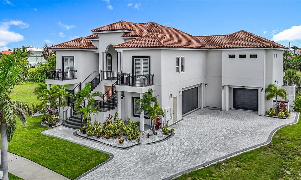 Preferred lender offering 1.25% credit toward buyer’s closing costs (subject to lender approval and buyer qualification). Step into elegance and coastal sophistication with this custom-built Mediterranean masterpiece, located in the prestigious 24-hour gated waterfront community of Andalucia, nestled on a private peninsula in Tampa Bay. This block-constructed residence offers nearly 5,000 sq ft of heated living space and over 8,200 total sq ft, thoughtfully designed for style, comfort, and function. With 4 spacious bedrooms, 3 full bathrooms, and 2 half baths, every corner of this home delivers luxury living at its finest. From the moment you arrive, you'll be greeted by a grand entryway with majestic dual staircases and a custom 8x8 ft fountain, setting the tone for what’s inside. Soaring 15-foot cathedral ceilings and wood-look porcelain tile floors create a breathtaking ambiance throughout the open-concept main level. The gourmet kitchen is a chef’s dream, featuring quartz countertops with waterfall edges, real wood cabinetry, high-end stainless steel appliances, and a gas cooktop. The expansive living area seamlessly flows onto a covered balcony with stunning water views, the perfect setting for entertaining or relaxing. But the true sanctuary of this home is the luxurious primary suite. Exceptionally spacious and filled with natural light, the room opens up to the main balcony through custom 90-degree pocket sliding doors, offering front-row seats to the sunset. Enjoy the comfort of motorized blackout shades, and escape to your own retreat with a fully customized walk-in closet that’s as stylish as it is functional. The en-suite bathroom feels like a spa, featuring a freestanding soaking tub, 15x4 ft walk-in shower with a 40-inch rain head, dual vanities, and backlit smart mirrors for the perfect glow. On the lower level, discover multiple bonus rooms ideal for a game room, gym, or media lounge plus a flexible office space with its own private entrance, perfect for working from home or transforming into an epic man cave. Car lovers will be thrilled with the oversized 3-car garage with finished flooring, easily fitting up to 5 vehicles depending on size. Love the outdoors? There’s ample room to build your dream pool, and from the second-level terraces, you’ll enjoy sunrise views from one side and sunsets from the other... a true Florida dream. As a resident of Andalucia, you’ll enjoy access to resort-style amenities including a private marina (slips for rent or purchase), clubhouse, community pool, tennis courts, playground, and a scenic fishing pier overlooking Tampa Bay.