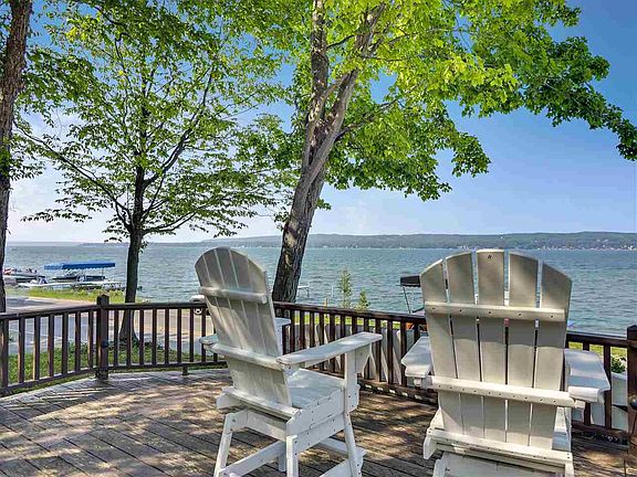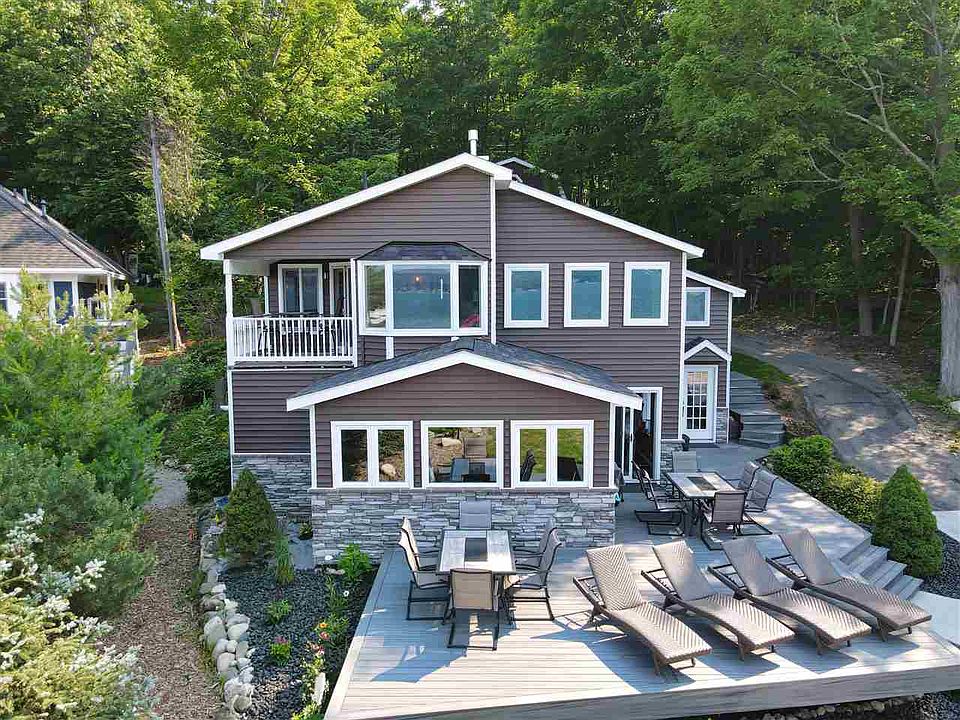 Your friends and family will build a lifetime of memories in this completely renovated turnkey home on Lake Charlevoix. Hurry this won't last There are too many upgrades mention them all, but for starters it was completely gutted and redone from top to bottom including adding sq footage and custom baths. There is new drywall throughout, paint, fireplace, siding, roof, enlarged drive, $40k city sewer hooked up, A/C, in-floor heated tile, landscaping, trees removed as to not miss every viewing op, garage converted to a bunkhouse with a 2nd full kitchen, game room, full bath and double queen log bunks the kids and adults won't want to leave. No detail was missed and everything you see comes with the home (ex hoist new dock, paddle boards, quality furnishings in and out, linens, accessories, fire pit and much more. The master includes its own private deck with amazing views of Boyne City. The kitchen was bumped out and widows now fill the home with light and views of the lake, composite decking. There is an additional shed by the lake to store all your water toys, lawn equipment, etc. If desired; rental potential exists for all seasons and for its first summer season it was booked solid. Walking distance to downtown Boyne City. Call for your private tour