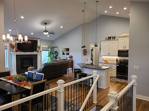 Beautiful open concept walk out ranch in popular Deerfield subdivision. Elementary school and library are short walk for the kids! Home has 3/4" European Birch Hardwood in the Living,dining room/kitchen as well as the lower level kitchen. Custom cabinets. Granite counter tops through out. Walk out lot is level in back for ideal spot to play catch or kick the soccer ball. Master bedroom has HUGE walk in closet, walk in tile shower and double vanity. 2x6 framed exterior walls add to the R value and keep utilities affordable. Home built with Pella windows.