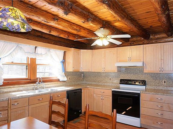 Gorgeous log home with land. This home is nestled among the flowers and foliage and looks like a mountain dream. You walk into a welcoming front porch perfect for relaxing. The stone fireplace is the focal point of the great room. The large bright kitchen hosts plenty of counter space. Upstairs is the master bedroom and half bath that overlooks the great room highlighted by lofty wood logs covering the ceiling. Ample storage and opportunity can be found in the large basement and the separate building.