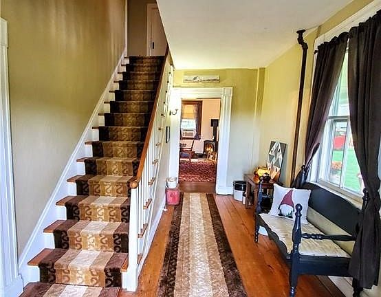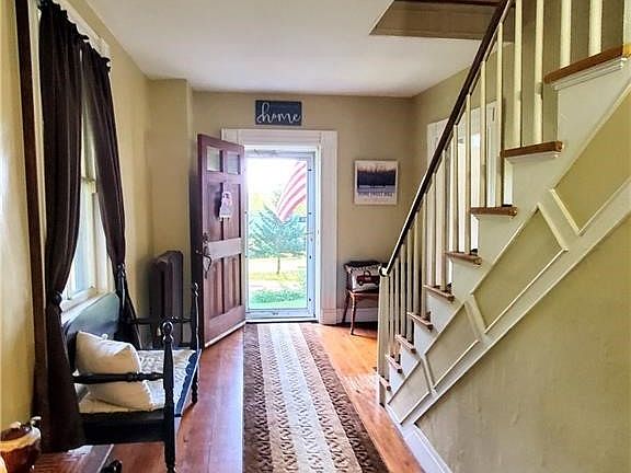 Welcome to the Farmhouse! "Farmhouse style" has become all the rage, but this one is the REAL deal... From the little red barn, to the wide-plank wood floors, to the shiny red apples in the orchard, this home oozes charm, coziness, and authentic country style (with modern upgrades of course!). Inside, you'll find an inviting and warm country kitchen; a large dining room perfect for entertaining, hosting holidays, complete with a propane fireplace you can run for the ambiance or to keep things nice and toasty throughout the home. A dedicated office on the first floor is perfect for work-from-home, or as a craft or workspace/library. Upstairs you'll find another full bath, an expansive primary bedroom, two mid-size bedrooms, and a fourth/fifth tandem bedroom with its' own separate stairway down to the kitchen. Outside, a large pole barn and a smaller barn offer tons of potential- from storage, to livestock, to workshops, there's plenty of room for hobbies, work, or just to keep all of your toys. Completing the package is an expansive lawn, lush field, 100+ year old oaks and maples, and a "mini" orchard with productive trees. Catch this one at sunset and you'll be sold!