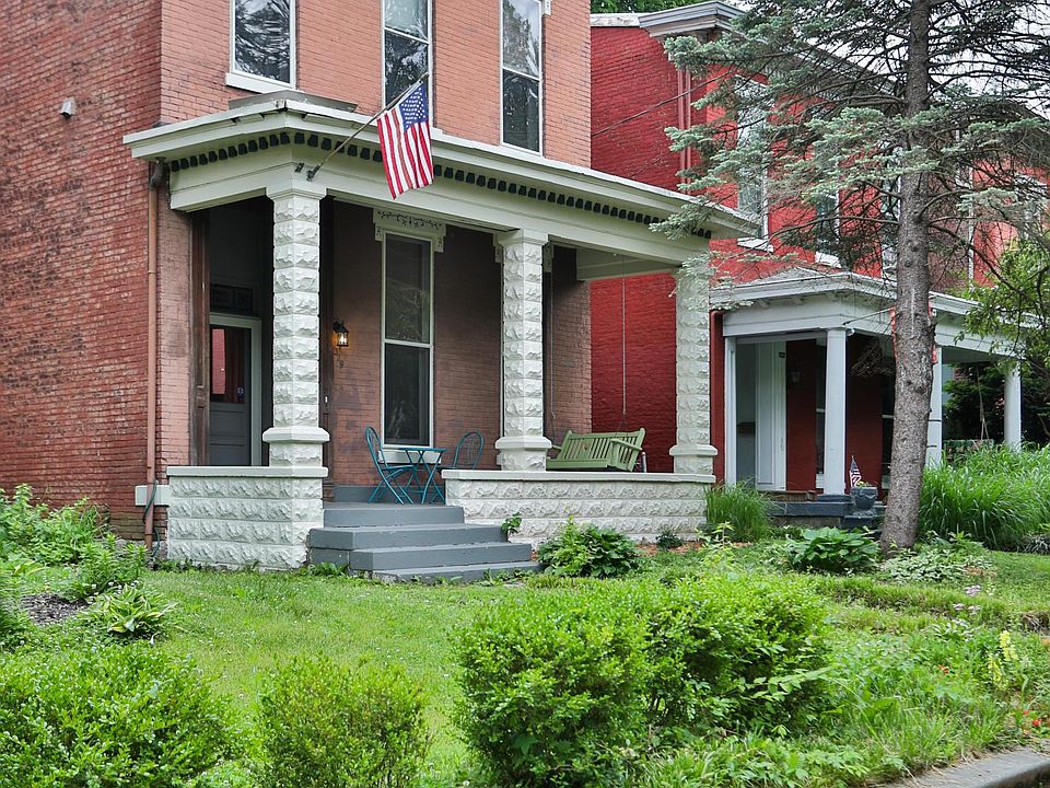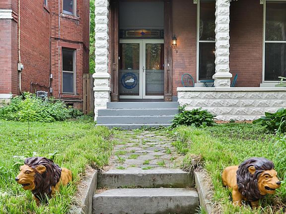 Turn of the century two story brick home in beautiful Old Louisville is a great find! This 3 bedroom 2 bathroom cutie offers spacious entry with a beautiful staircase, formal living room, formal dining room, eat in kitchen with raised panel cabinetry, smooth top range, dishwasher and refrigerator that remain with the property. Large picturesque window lets in lots of natural light in kitchen. Beautiful brick patio in the private backyard with 2 parking spaces in the back. Updates by current owners include new first + second floor HVAC, all new plumbing except connection to primary bath and washing machine, new dishwasher, new water heater, storm windows on front of house and new storm door. spray foam insulation throughout Cellar. remodeled both bathrooms.