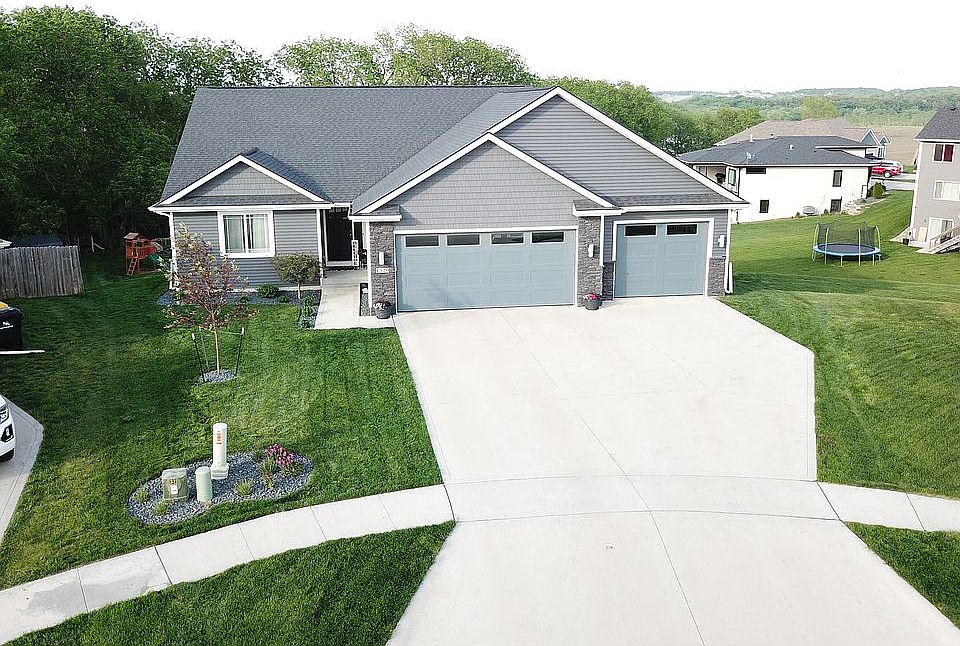 TAX ABATEMENT UNTIL 2023! This breath-taking ranch home is nestled in a quiet cul-de-sac and within walking distance to the Adel De Soto Minburn High School! This spacious home boasts a beautiful open design, with 3 bedrooms on the main floor. The master bedroom features an en-suite bathroom, with tiled shower, and walk-in closet. The living room features a cozy fire place and great views of the timbered backyard. With over 2,500 finished square feet throughout, it is also full of quartz countertops in the kitchen, bathrooms and basement bar. The walkout basement is finished with a spacious family room, wet bar, 4th bedroom with walk-in closet, bathroom and plenty of storage space. While the inside is impressive, the backyard is the icing on the cake! This will be the place to be all summer long entertaining around the fire-pit in your own outdoor oasis. Additional features include an over-sized 3 car garage, irrigation system that covers the whole property, 10x12 utility shed, over-sized 14x16 stained deck, walk-in pantry, and a timbered backyard that has mowed trails to the high school/football field. For sale by owner, please contact Sarah at (641)757-9308.