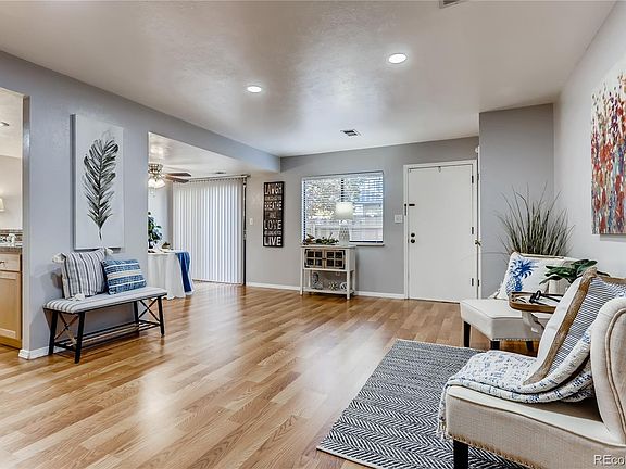 Well-maintained, spacious, updated, 2-story, 2-bed, 1.5 bath townhome that may just be less than you're paying in rent! Kitchen has been opened up to living/dining & features a breakfast bar, along with new appliances to go with the already-newer cabinets/counters. New flooring & paint throughout. New hot water tank. New ceiling fans & recessed lights. New garage door & newly-sealed garage floor. HOA put on new roof! New privacy fence for your very own spacious patio. Newer washer/dryer included. Double-paned windows & 2" blinds for efficiency/comfort. Good storage throughout, including utility closet/pantry off kitchen & walk-in master closet. Furnace is in process of being upgraded for central heat/air system. Home is right across the street from Village Green Park with its outdoor pool, rec center, newer playground & tennis courts. Easy walking distance to King Soopers & several 4+ star eateries (including Cuba Bakery...yum!). Just over 1 mile to the Florida Station (light rail). Easy access to DIA, I-225 & Cherry Creek State Park. Come see today!