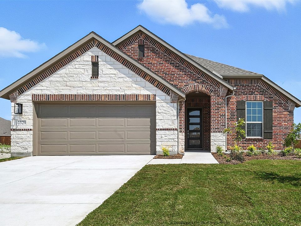 The Palm floor plan showcases stunning curb appeal with its entrance, making it a standout choice for any homeowner who is looking for 4 bedrooms, 3 baths. Inside, you'll find an expansive open-concept kitchen that serves as the heart of the home, equipped with a large pantry, an island perfect for meal prep and casual gatherings, and a sunlit casual dining area that seamlessly connects to the back covered patio, ideal for enjoying morning coffee or hosting family barbecues. The exclusive owner's suite is a tranquil haven, thoughtfully positioned away from the great room. This spacious retreat features high ceilings, providing an airy feel, along with a beautifully designed bathroom complete with a dual sink vanity, a luxurious shower, a large garden tub for relaxation, and an impressive closet that offers ample storage space. Three additional bedrooms are thoughtfully designed in their own space, making them perfect for children or overnight guests. These rooms provide convenient access to a full bathroom, while one bedroom is with its own ensuite, offering added privacy and comfort. Set against a picturesque backdrop of spacious country surroundings, the neighborhood is rich with access to numerous parks and family-friendly amenities, creating an ideal environment for outdoor activities and community gatherings. Enjoy a prime location that provides quick commutes to various employment opportunities, dining options, and shopping conveniences in the vibrant town of Anna, as well as the charming atmosphere of downtown McKinney, where delightful shops and eateries await.