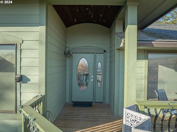 Welcome to 1329 Sterling Dr, an elegant 4-bedroom, 3-bath home nestled on a private loop in The Dalles. Built by Ron Hageman, this 2,668-square-foot residence on a 0.25-acre lot combines classic craftsmanship with modern upgrades. The home features smart, stainless steel appliances, double convection ovens, walnut flooring, smart thermostats, and a convenient dumbwaiter from the garage to the kitchen for easy grocery transport. The main level boasts two spacious living rooms, offering flexibility for a variety of lifestyles. One could easily be converted into a private living quarter, ideal for guests or multi-generational living. The primary bedroom includes a walk-in closet and a beautifully tiled bathroom, creating a luxurious retreat within the home. Outside, a fully fenced backyard awaits, featuring lush landscaping, a pond, and a hot tub—perfect for relaxation and gatherings. Oh..and don't miss the bright flex space for workout room/plants if you have a green thumb or a sweet morning coffee spot. Backs up to 25 acres of private trails and offering sweeping views of The Dalles from the front, this home is a serene yet convenient retreat for those who appreciate both comfort and the outdoors.
