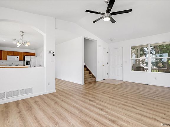 Many brand new updates, including new flooring an fresh paint throughout! Great opportunity in Longmont’s desirable Wolf Creek community. This home is on a pretty tree-lined street and has a classic front porch perfect for relaxing after a long day great, and backs to open space so no neighbors behind! Inside is a spacious open floor plan with vaulted ceilings and easy-maintenance laminate wood floors, Open kitchen has a new stainless refrigerator & dishwasher, ample warm wood cabinetry, and a peninsula island for additional seating. Three bedrooms upstairs, including the primary with en-suite bath, and additional bedroom in the basement that could also easily make a great TV room or teen retreat. New roof and new washer! Great location walking distance to schools, community parks, Union Reservoir, Fox Hill Golf Course, dog park, and close to groceries, shopping, dining and any amenities you may need!
