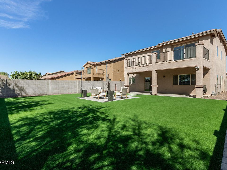 Ask us how to get approximately 4.125 % interest rate at no charge to this beautifully designed 2,500 sq. ft. home, where comfort and style come together effortlessly. This open and inviting residence offers 3 spacious bedrooms, 2.5 bathrooms, and a dedicated downstairs office, making it ideal for both work and relaxation. The fresh new carpet throughout adds a touch of warmth, while the thoughtful layout provides two separate living areas downstairs and a huge upstairs loft, offering plenty of space to gather and unwind. The kitchen is the heart of the home, featuring granite countertops, new stainless appliances, and a generous pantry, perfect for those who love to cook and entertain. Upstairs, the luxurious owner's suite is a private retreat, complete with its own private balcony, a spa-like ensuite with a walk-in shower, jetted garden and an oversized walk-in closet. All guest bedrooms feature walk in closets. A large upstairs laundry room with a sink, cabinets, and counter space ensures everyday convenience. Step outside to the expansive, newly remodeled backyard, a true sanctuary designed for both relaxation and entertaining. Enjoy lush synthetic turf, stylish pavers, a raised garden bed, and a spacious covered patio, creating the perfect space to enjoy Arizona's beautiful weather. Ironwood Crossing offers 21 parks, walking paths, 2 community pools w/splash pad, frisbee golf course, soccer field, bocce ball, beach volleyball, basketball courts, mountain views.