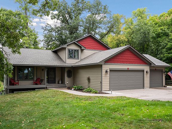 Nestled within a serene wooded lot, this inviting home seamlessly combines modern living with natural charm. As you step inside, the open concept design showcases rich wood floors that span the entire main floor, lending a warm and welcoming ambiance. The kitchen takes center stage, featuring a convenient breakfast bar and a seamless transition into a four-season porch, where you can savor the beauty of each season. The family room beckons with its wood-burning fireplace, offering a cozy retreat. On the main floor, a dedicated laundry room adds to the convenience. Upstairs, the bathroom, complete with heated floors, adds a touch of luxury to your daily routine. The lower level surprises with a generously sized family room, perfect for endless entertainment possibilities. Step outside onto the deck, extending your living space and providing a tranquil escape amidst nature's beauty. Additionally, this home boasts not only an attached garage but also an extra-large garage.