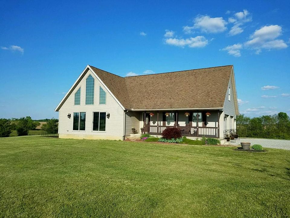 JUST AN AMAZINGLY UNIQUE HOME. YOU WILL ABSOLUTELY FALL IN LOVE WITH THE SOARING 22 FT KNOTTY PINE CEILINGS AND WALL OF TRAPEZOID WINDOWS THAT PRODUCE AN ABUNDANCE OF NATURAL LIGHT AND COUNTRYSIDE VIEWS. OPEN CONCEPT LIVING, DINING, AND KITCHEN IS THE PERFECT SETUP FOR ENTERTAINING OR FAMILY GATHERINGS. THE OPEN FEEL CONTINUES AS YOU WALK UP THE STAIRS TO A SPACIOUS LOFT/SITTING AREA THAT OVERLOOKS THE DOWNSTAIRS. UPPER LEVEL OFFERS BEDROOM WITH WALK IN CLOSET, LARGE LOFT AREA THAT COULD ALSO BE AN OFFICE SPACE, HUGE UNFINISHED BONUS RM THAT'S PLUMBED AND COULD OFFER AN ADDL 432 SQ FT FOR THE ULTIMATE THEATRE RM OR 2ND MASTER SUITE. ENTRY LEVEL BOAST MASTER BEDROOM W/ ATTACHED BATH AND WALK IN CLOSET, 2ND BEDROOM, AND UTILITY RM. LASTLY, A FULL WLKOUT BSMT WITH ENDLESS POSSIBILITIES