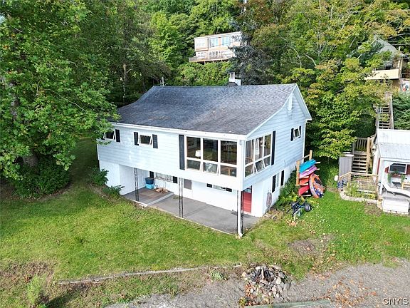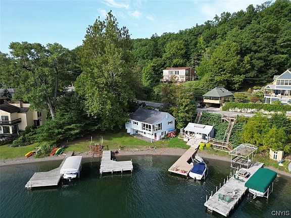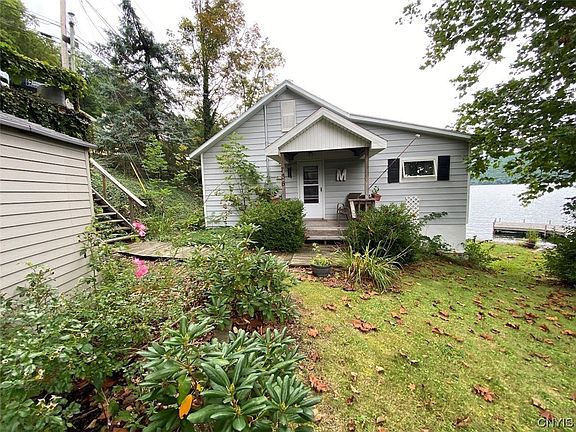 Welcome to this Keuka Lake waterfront home located in Hammondsport NY! This beautiful year-round home on Keuka Lake offers 72 feet of walk-in lake frontage and a level beach. Enjoy the stunning views of the bluff from the open floor plan which includes 3 bedrooms with large closets, and an abundance of counter space and cupboards in the kitchen. There is 1 full bathroom and 1 half bathroom, as well as a finished basement with a bar and fireplace. Outside, there are private parking spaces and a large permanent dock. Spend your days swimming, fishing, and boating in the waters of Keuka Lake. Enjoy the beautiful sunrises from the dock or the beach. This is the perfect home for anyone looking for a peaceful getaway or a year-round residence. With its stunning views, level beach, and yard space for outdoor activities, it is sure to be the perfect place to make memories that will last a lifetime. This property is being sold AS-IS with delayed negotiations. All offers must be submitted by Tuesday, 9/26 at 5pm. The buyer will have to connect the home to Pulteney public water.