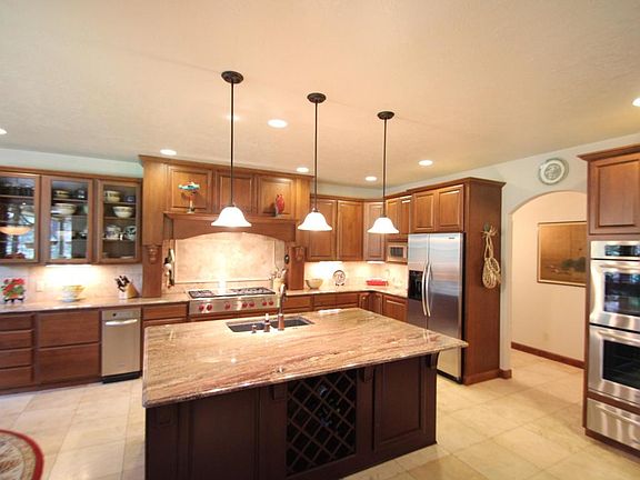 Custom Rancher On 5 Acres With Shop! 3,379SF Rancher with 4Br/3Ba. Many upgrades: Gourmet kitchen with granite countertops, travertine flooring, wolfe cooktop, stainless steel appliances crown molding and more! Beautiful cherry hardwood floors, fireplace, formal dining room, and large bonus room. Has finished 3 car garage AND 30'X40' heated Shop. Private and treed acreage with water feature, raised garden beds with automatic drip with timers, firepit with BBQ area and 12'X15' greenhouse. Minutes to National Forest! Right off paved county road!