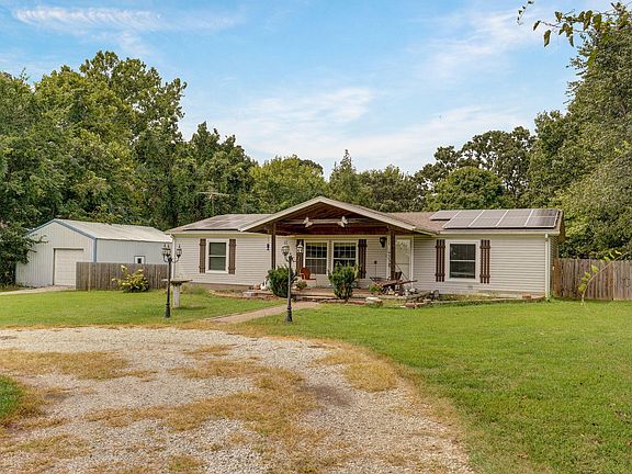 The long circle drive takes you to this cute home on 1.43 Acres with a 24x30 detached garage/shop. You'll love the low utilities supplied by the paid off solar panels. All bedrooms have walk-in closets. The home has a large living room open to the dining room. The kitchen has lots of cabinets and counter space, perfect for entertaining and cooking. The oversized deck with a partial covered area lets you enjoy the park like back yard that is secluded and just the right amount of trees. Home also has a coved front patio. If you are looking for a home in country, yet close to town, this is a must see. Just minutes to Mt Vernon and just 30 minutes to Springfield and Joplin.