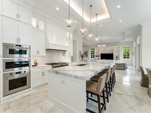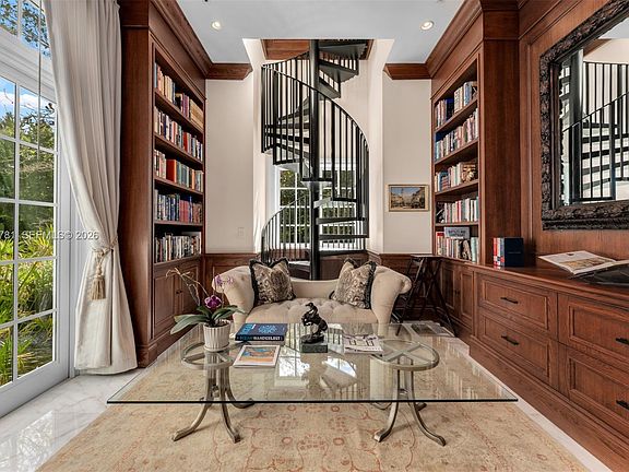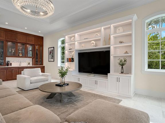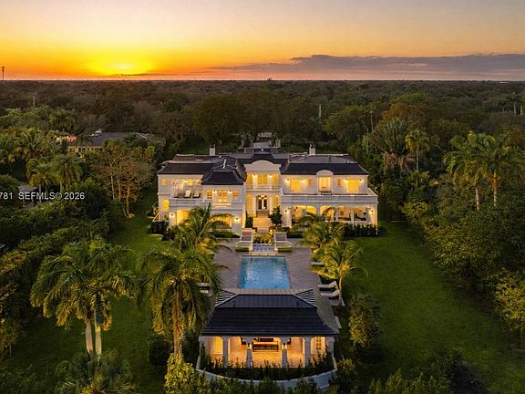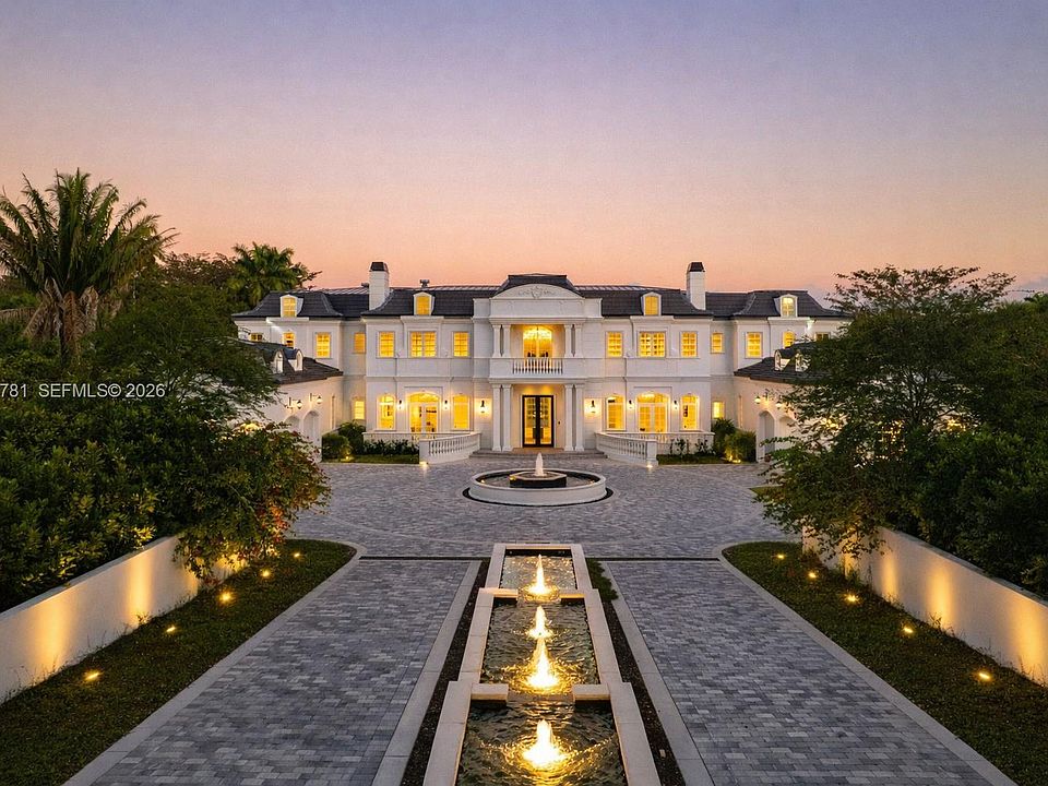 Set behind a grand approach with a long circular driveway and a dramatic 90+ foot cascading water fountain, Chateau du Soleil showcases award winning architecture by Ramon Pacheco. Timeless French château elegance meets modern luxury with soaring ceilings, marble floors and baths, fireplaces, dormer windows, and exquisitely detailed wall finishes throughout. A custom two-story library anchors the home, complemented by a private theater, gym, residential elevator, staff quarters, and three staircases. The primary suite offers massive walk-in closets and a private terrace, while additional suites enjoy balconies with serene views. Resort style grounds feature lush lawns, koi pond, covered terraces, full summer kitchen, gazebo with fire pit and cabana bath, plus room for a future sports court. Ideally located near elite Pinecrest schools, this is a rare legacy estate for refined living and grand entertaining.