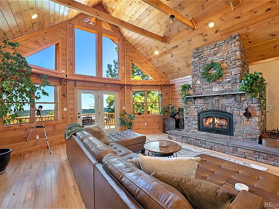 Uncommon opportunity awaits *Perfectly situated on 2+acre, beautifully treed lot with extensive rock outcroppings *Sweeping mountain views, accented by city lights *Light & bright throughout the very open and inviting 6bed/3bath floorplan *Vaulted great room highlighted by wall of windows *Wood burning insert in an impressive stacked stone, floor-to-ceiling fireplace *Open kitchen, expansive island, large pantry +prep sink *Cherry cabinetry, soft close +many pull-outs *Loads of gleaming slab granite +tile backsplash, stainless steel appliances, double oven, gas cooktop *Sumptuous, well-appointed main level primary suite, large walk-in, opens to deck *Beautifully finished 5piece bath, large walk-in shower, jetted tub +heated floor *Fully finished walkout *Lower level holds potential as In-law/Guest quarters or configure with separate entrance *Huge entertainment room with fully equipped kitchen * Gorgeous finishes, extensive built-ins, 3 large bedrooms, beautiful tiled accented bath +2nd laundry *500+sqft of freshly stained deck opens to your expansive views *2car garage, EV charger, graded area prepped & sited for adjacent garage/outbuilding *On demand hot water, high speed internet, metal roof, storage & utility room behind clever bookcase door *Tremendous neighborhood setting, backing to large acreages, wildlife abounds *Great access on well-maintained Jeffco roads along school bus route *Exceptional, must see turnkey opportunity, all furnishings negotiable …Move Right In