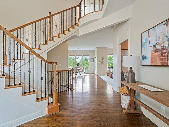 Nearly 1/2 acre and plenty of square footage in Leawood’s sought-after Wilshire Place! This original-owner home is Move-In Ready with 5 bedrooms and 5.1 baths in award winning Blue Valley School district. Gorgeous open floorplan features 2 story entry, curved staircase with balcony, and soaring ceilings in formal sitting room. Large kitchen with granite countertops, upgraded all-drawer cabinetry below, expanded island, and white enamel cabinets opens to dining room with builtins and great room with fireplace. Bedroom/Office on the main has attached full bath, fireplace and private garage entry. Upper level has primary bedroom with ensuite bath, 3 large secondary bedrooms with built-ins and walk in closets, and 2 additional full baths. Walkout lower level features a family room with electric fireplace, gorgeous bar with high-end finishes, flexroom, and full bath. Basement theatre room has raised platform for seating and projection tv and screen with sound system components. Enjoy the gorgeous sunsets from the deck overlooking the large, flat backyard bordered by protective berm and evergreen plantings for privacy, the ideal location for a pool! Don’t miss the tennis and basketball courts, play area, and neighborhood pool. Conveniently located near shops, restaurants, and entertainment.
