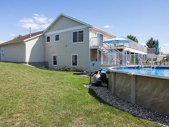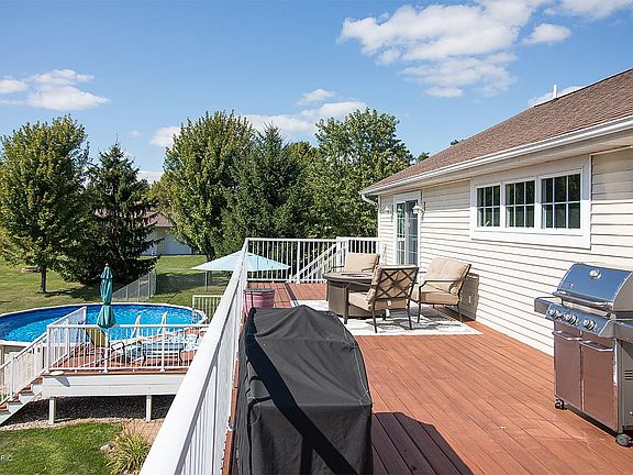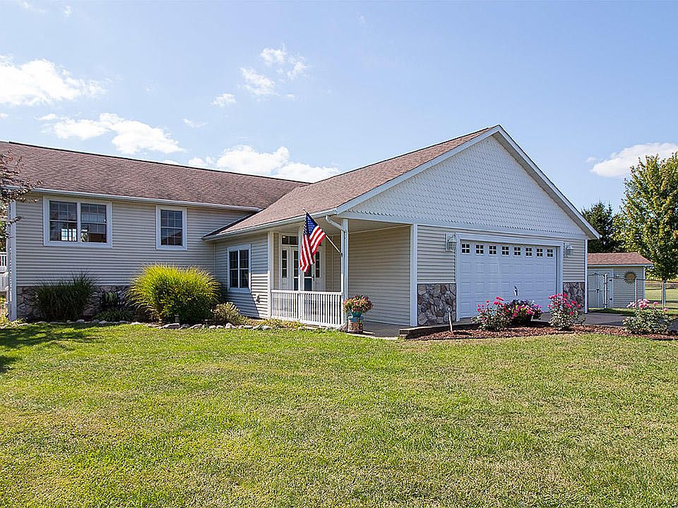 3 +- acres with country privacy and mature trees. Enjoy the sunsets from your deck which runs across the back of the home. 3 sliders enables you to get to the hot tub, grill, above ground pool, or the patio. Side yard is fenced for your pets. 30 x 24 outbuilding with 10' sidewalks, electric and lots of insulation so it's affordable to heat. The home is very much up to date with it's decorating, colors, white trim etc. Open floor plan with vaulted ceilings. A large pantry, snack bar, and a 30 x 15 master bedroom suite with walk-in closet and a full bath. Lower level is full of windows and a slider. There is a family room, 2 bedrooms, & full bathroom. Energy efficient furnace & central A/C.