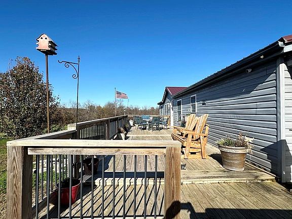 This country retreat on 3 acres between Stockton and El Dorado Springs, MO is one that must be seen! A modern, manufactured home, this 1500+ sq ft home offers more than just country living. It provides the country lifestyle many dream about. This 3 bedroom, 2 bathroom home features a extra large living area and a spacious country kitchen complete with painted white cabinets, modern lighting, hanging ceiling pot rack, a large dining island/work bar, and a coffee station. While the interior of the home is comfortable and beautiful, the exterior living space will likely be where most of your time will be spent. The large front deck has seating for many and overlooks the large open front yard. The mostly enclosed and completely covered back porch features built-in seating, an outdoor bathroom and changing room, and plenty of space to entertain a crowd. The backyard also features a paved patio with firepit area, built-in outdoor seating, 2 gazebos, and a play area. The detached garage features rustic wood siding, complementing the rest of the backyard feel. An additional outbuilding/shop could provide space for a business or storage. The outbuilding is heated and cooled with insulation, a concrete floor, and a 3-tub sink. In addition to these great features, this property is located only 12 miles from the beautiful Stockton Lake. Recreational opportunities are endless in this part of the Ozarks that specializes in fishing, hunting, hiking, boating, and other activities for the outdoor enthusiast! This excellent country home features the lifestyle you may have been looking for! Call today for a showing!