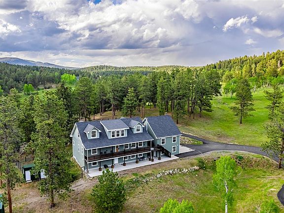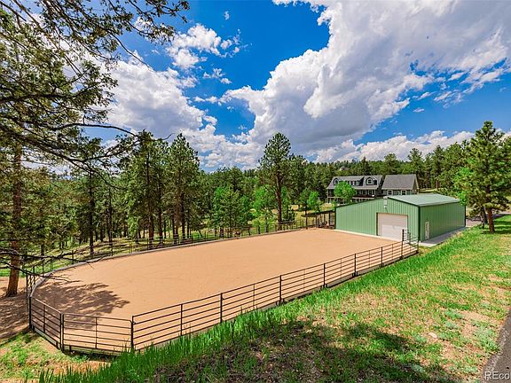 Welcome to Featherland Hills, where relaxation & serenity awaits at this private mountain oasis. Beautiful multi-generational 2 story home w/ walkout basement situated on 11+ acres of slightly sloping horse property w/ a mixture of mitigated forest & meadow. Imagine waking up every morning, taking your cup of coffee, & enjoying a breath of fresh mountain air on your deck, overlooking rolling hills & your horses grazing in the pasture. Meticulously maintained, updated home w/ 6BDs, 4BTHs, large loft, & sunroom w/ wrap around windows & an open concept layout. Kitchen boasts contemporary light grey cabinets, white center island, gorgeous slab granite, & SS appliances. Main floor, master w/ 5-piece remodeled ensuite & walk-in-closet. Upstairs, 2 huge bedrooms w/ walk-in-closets, full bath, & loft. Partially finished walkout basement w/ hookups for an add’l bath, kitchenette, bedroom w/ walk-in-closet & large storage areas. Bonus multi-generational/caretaker/nanny/income potential space w/ separate entrance connected to house via main floor laundry room includes living room, full kitchen, bedroom, & bath. Enjoy the outdoors of this one-of-a-kind property w/ a huge covered trex deck. Extensively renovated 36x60ft Cleary metal building w/ add’l fenced lean-to enclosure off the stalls & 3 garage doors. Building is divided into a finished insulated workshop w/ cement radiant in floor heat & barn. Workshop is a hobbyist dream w/ moveable car lift. Barn has cement floors, auto heated waterer, 2 custom Priefert stalls (12x12 and 16x12), hay storage, tack storage, & cement floors w/ stall mats. Adjacent 100x50 sanded riding arena & fenced pasture. Zoned A-2 legal horse/ livestock property includes water augmentation rights through the South Platte. Add’l buildings include large woodshed/hay storage, garden shed, 3 containers & chicken coop. Great location & convenient to Conifer. Tucked away yet, safe & easy access to 285. Located just 3 miles off 285. 25 min to C470. No HOA.