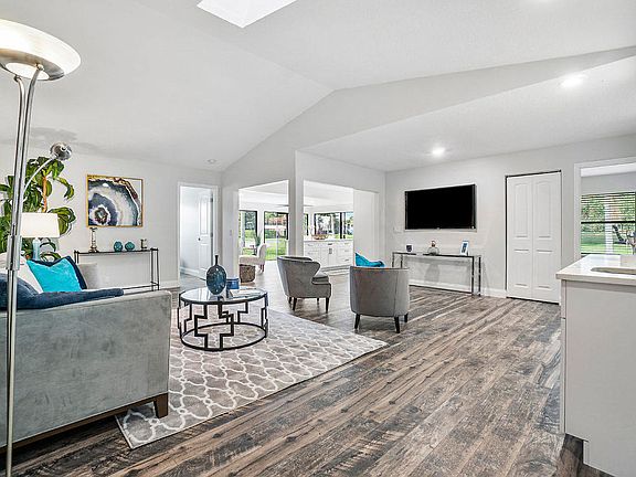 This is it!! Fully renovated 3 bedroom, 2 bath Single Family Home in the center of the community. Kitchen has been relocated to the back of the house, white shaker style cabinetry with white calcutta quartz counters. Open living space that features a bar with wine fridge. Interior laundry room and beautiful bathrooms make this a must see home. Professional Photos being taken 12/16 - schedule your private showing before it hits the market! Surrounded by golf holes, watch as the golfers go by. Eastpointe has a mandatory social membership of $4280/year. This grants the owner access to the fitness facilities, tennis, pickleball, pools, card rooms, restaurants and lounge. Please view the link to see the upcoming renovations of the West Cluhouse, pool and grill room.