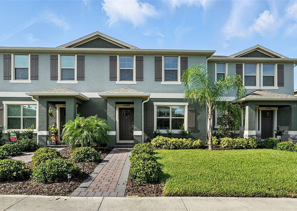 Built in 2023 and beautifully staged, this stylish 3-bedroom, 2.5-bath townhome offers modern comfort in one of the area's most sought-after, amenity-rich communities—just minutes from Disney! Upstairs, you'll find all three bedrooms, including a spacious primary suite with a walk-in closet and a spa-like en-suite bath featuring dual sinks and a walk-in shower. A second-floor laundry area adds everyday convenience. Downstairs, the open-concept layout boasts sleek tile flooring, a bright living and dining area, and a contemporary kitchen with granite countertops and stainless steel appliances—all included. Additional highlights include a powder bath on the main floor, a practical drop zone by the garage entry, and pre-wiring for ceiling fans in all bedrooms and the living room. Step outside to a covered back patio—perfect for morning coffee or weekend gatherings. The rear-entry 1-car garage, 2-car driveway, and guest parking out front ensure room for everyone. Enjoy resort-style living with access to a sparkling pool, fitness center, dog parks, playgrounds, scenic walking trails, and frequent neighborhood events. With shopping right at the community entrance and lawn care plus exterior maintenance covered by the HOA, this home truly delivers low-maintenance, high-enjoyment living in a place everyone wants to call home!