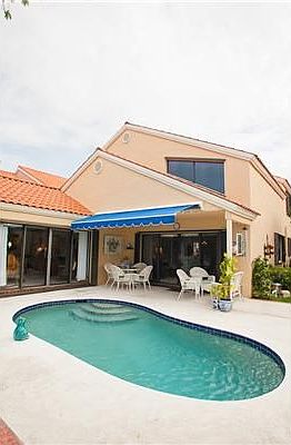Beautifully maintained lakefront home with remodeled kitchen, accordian hurricane shutters and private pool with south exposure.Over $50,000 invested in upgrades and improvements. Shows exceptionally well. Open loft upstairs for office or 4 BR.