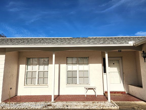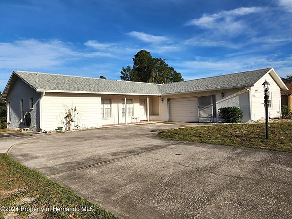 Welcome to this charming 2-bedroom, 2-bathroom home featuring a split floor plan on over a half-acre. This home has the perfect blend of comfort and functionality. In the kitchen, relish the spacious pantry with numerous cabinets and expansive counter space, highlighted by an extended island inviting bar stool seating for added convenience. The primary bedroom, generously sized, offers a serene escape with a walk-in closet and its own private bathroom. Natural light floods the living room and dining area through sliding glass doors, seamlessly connecting indoor and outdoor spaces leading to the lanai. Adding an extra layer of convenience to your daily routine, the indoor laundry room is a welcome feature. Car enthusiasts and hobbyists will find solace in the expansive garage, offering secure parking and extra space for a workshop or storage. For those craving additional storage options, the backyard shed provides extra space for tools or equipment. Roof is 2019 and AC is 2018. Don't let this chance slip away—make this property yours and start living the lifestyle you've always dreamed of!